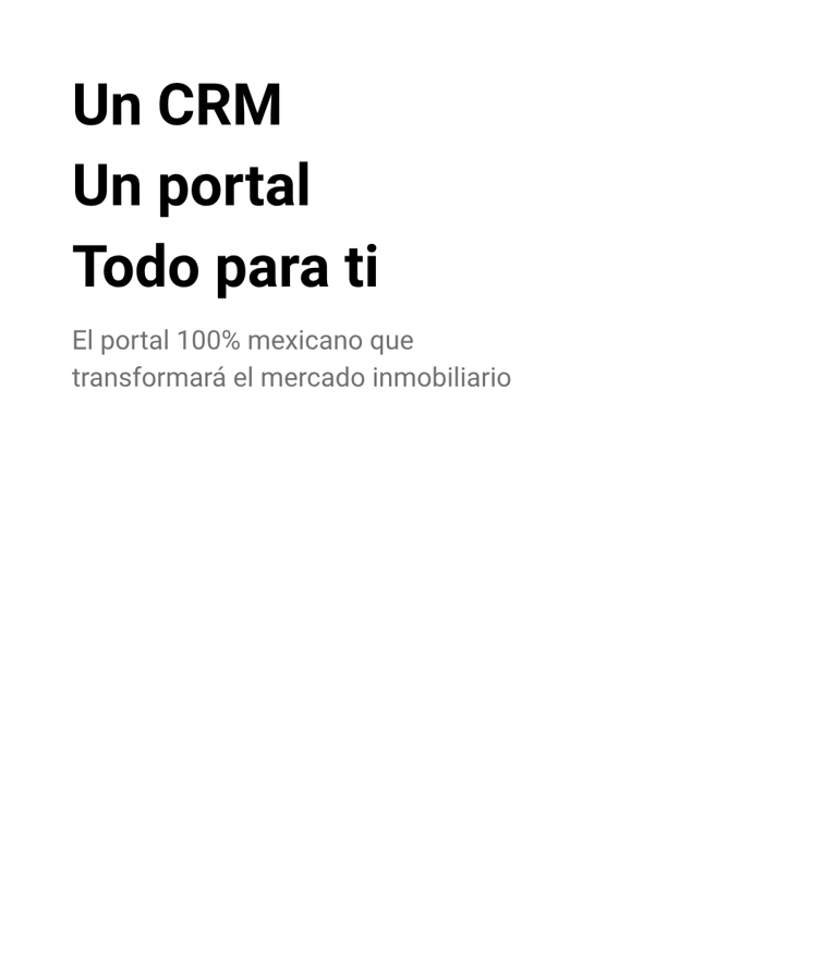 Somos un portal inmobiliario + CRM centralizado 100% mexicano, creado para que asesores, agencias y propietarios puedan publicar, gestionar y dar seguimiento a sus clientes de forma práctica y sin complicaciones.